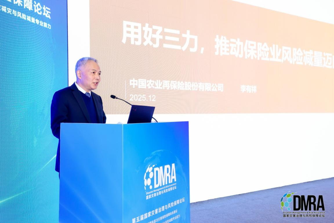 2025年12月11日,中国灾害防御协会、中央财经大学、中国再保险集团共同举办的“第五届国家灾害治理和保险保障论坛”在京召开。中国农再党委书记、董事长李有祥应邀出席并以“用好三力、推动保险业风险减量迈向新阶段”为题作主旨报告。