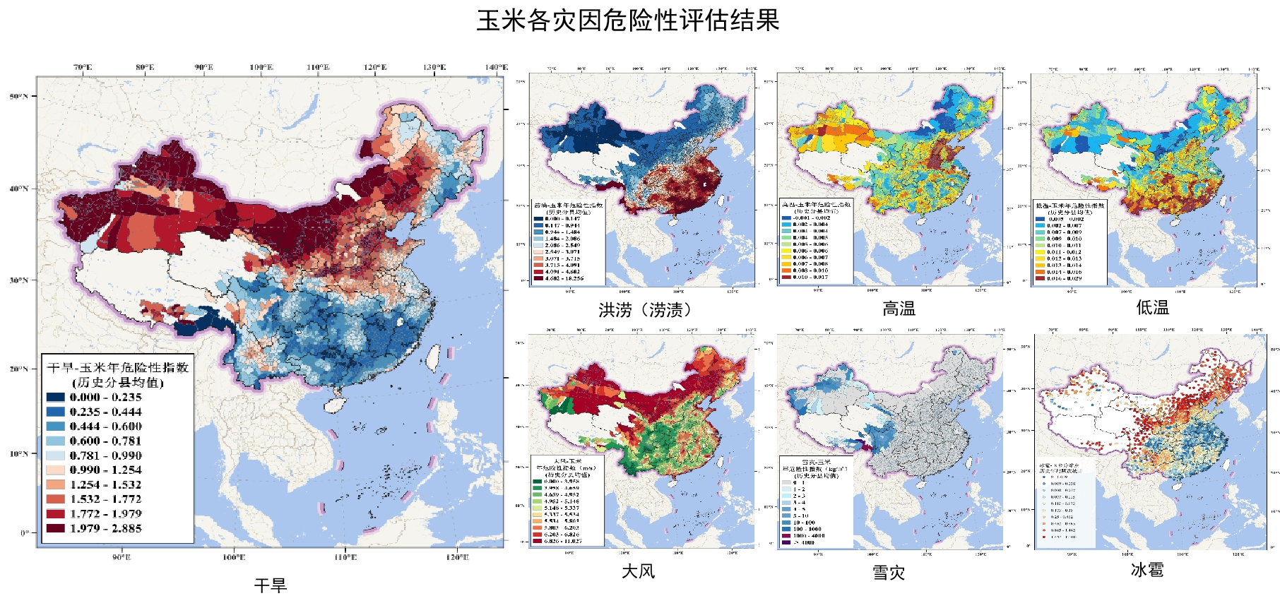 项目圆满完成第一阶段预期目标,构建了中国三大粮食作物巨灾模型方法体系,实现了全国范围内农业干旱、洪涝、大风、高温、低温、降雪、冰雹等7个灾种危险性评估,量化了全国范围内春玉米、夏玉米在格网、乡、县三级尺度的年损失均值、标准差及不同重现期损失等核心指标,研发了多平台适配、高效数据存取的农业巨灾核心计算引擎。相关成果在国内农业巨灾模型领域具有创新性。