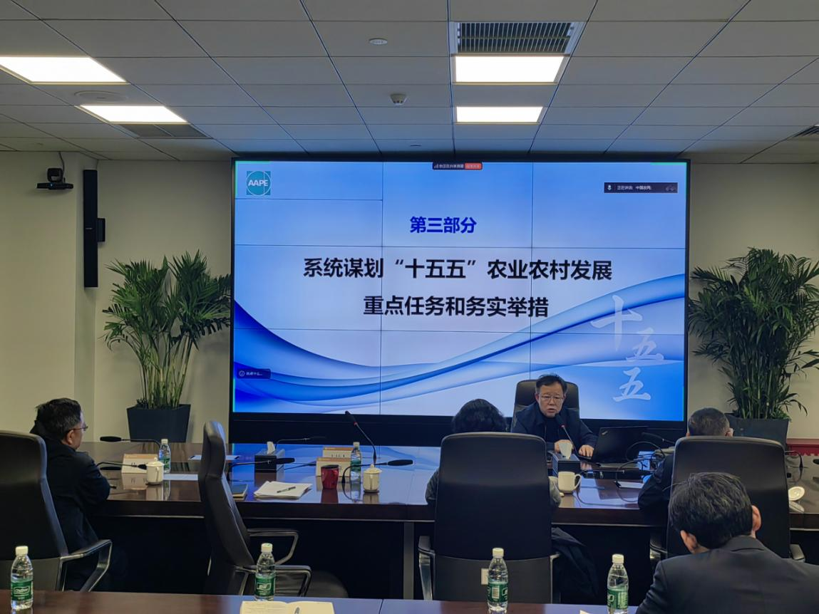 王衍院长从深入学习领会二十届四中全会精神、科学研判“十五五”农业农村发展形势和系统谋划“十五五”农业农村发展任务举措三个方面,通过大量详实数据和生动案例,进行了深入浅出讲解和精彩专题授课。他指出,要深入理解、准确把握、全面贯彻二十届四中全会精神,将农业现代化扩展到农业农村现代化,以加快农业农村现代化更好推进中国式现代化建设。“十五五”期间,面对世界百年变局与国内转型发展的双重挑战,加快农业农村现代化,必须系统谋划、精准施策,重点围绕巩固粮油产能、构建多元食物供给体系、健全农业现代化产业体系、发展农业新质生产力、深化农村改革等11个关键领域布局推进。